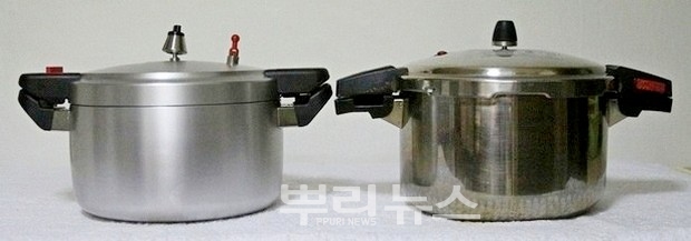 같은 회사의 (왼쪽부터)주물 압력 밥솥과 일반 압력 밥솥. 정수남 기자