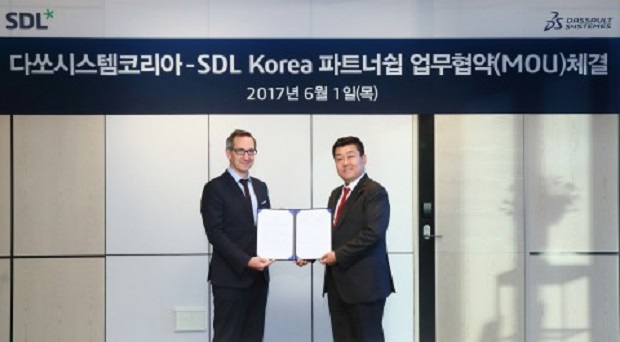 컨텐츠 관리 및 언어 솔루션 분야의 글로벌 혁신 기업 SDL Korea가 3D 디자인 소프트웨어 및 3D 디지털 목업, 제품 수명주기 관리(PLM) 솔루션의 글로벌 대표 기업 다쏘시스템코리아와 1일 오후 국내 비즈니스 협력을 위한 전략적 제휴 협약을 맺었다.