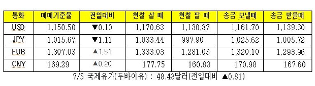 5일 서울 외환시장에서 원·달러 환율은 전날보다 0.10원 하락한 1,150.50원에 거래를 마쳤다.