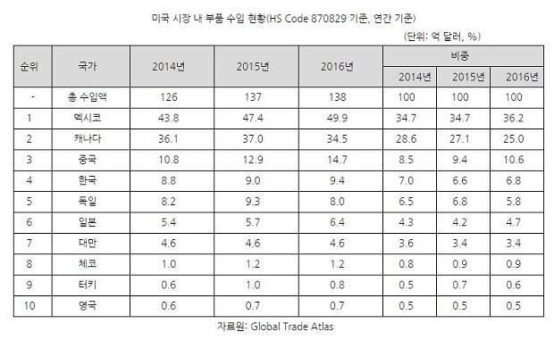미국 시장 내 부품 수입 현황. (출처=Global Trade Atlas)