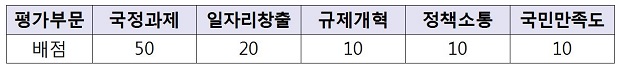 아울러 국정과제는 이행결과에 대한 평가와 함께 국민들의 평가인 국민만족도 조사를 통해 매년 종합 평가한다.