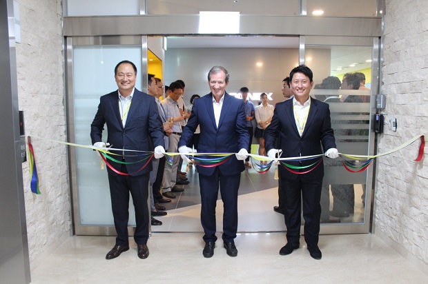 코그넥스코리아는 지난 2일 사무실을 확장, 이전하고 이전식을 가졌다. 왼쪽부터 코그넥스 문응진 KIA(Korea, India, Asean) 대표, 코그넥스 라크로와 디디에(Lacroix Didier) 글로벌 세일즈 및 마케팅 수석 부사장, 코그넥스코리아 조재휘 지사장.
