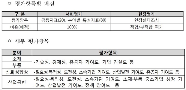 ‘소재·부품 기술개발 유공’ 부문 ‘평가항목별 배점’과 ‘세부 평가항목’