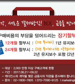 또한 금융사와 계약을 맺고 NX 구매 비용의 부담을 덜어주는 장기할부 프로모션도 함께 진행된다. 12개월 할부 구매 시 1년 유지보수 비용을 포함하여 무이자 혜택을 볼 수 있다. 24개월 할부 구매 시에는 2년 유지보수 비용을 포함해 첫 1년은 무이자이며, 이후 1년 약정이자를 부담하면 된다.