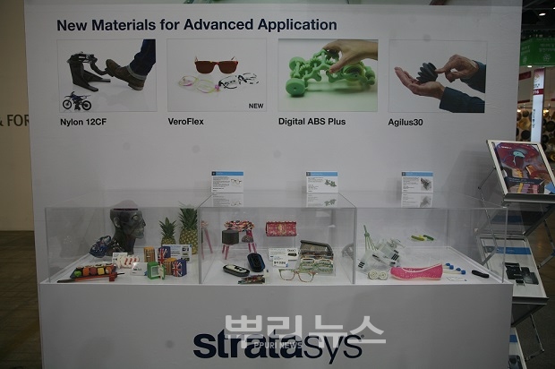 스트라타시스코리아가 선보인 3D프린팅 소재와 출력물. (사진=뿌리뉴스)