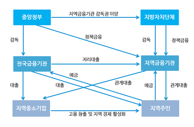 지방분권과 지방자치를 기반으로 하는 지역경제 활성화와 자율적인 지역정책의 추진을 위해 지역경제의 재원조달 창구와 금융취약계층을 지원하는 지역 기반 관계금융시스템을 구축해야한다는 주장이 나왔다.