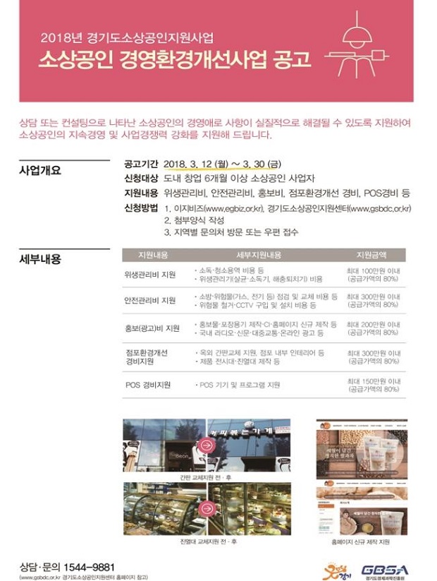 한편, 자세한 사항은 경기도경제과학진흥원 소상공인지원센터(1544-9881)로 문의하면 된다.