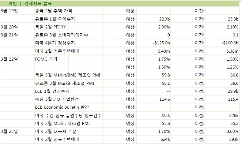 이번 주 경제 지표 발표…22일 美 FOMC 금리 등