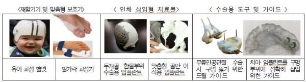 맞춤형 보조기는 의족, 유아 머리 교정기, 허리 및 발가락 교정기 등으로 이는 환자 체형에 맞도록 하는 것이 특히 중요한 분야이다.
