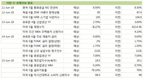 이번 주 경제 지표 발표…14일 美 6월 FOMC 금리 결정 등