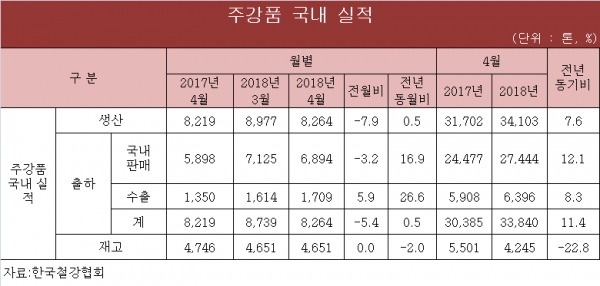 한편 올해 1~3월 주강품 전체 판매는 2만5,237톤으로 2만3,137톤이었던 지난해 같은 기간보다 9.1% 증가했다.