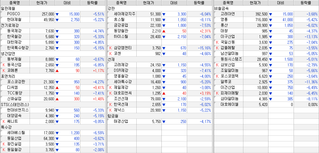 철강ㆍ비철株, 대내외 악재에 큰 폭 하락