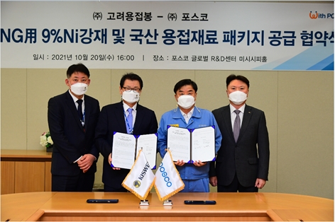 이에 포스코와 고려용접봉은 지난해 전략적 기술개발 협약을 맺고 9%니켈강용 국산 용접재료 개발에 착수해 1년여의 개발기간을 통해 수동, 자동, 반자동 등 모든 용접 방법에 사용할 수 있는 3가지 종류의 용접 재료를 공동으로 개발했다.
