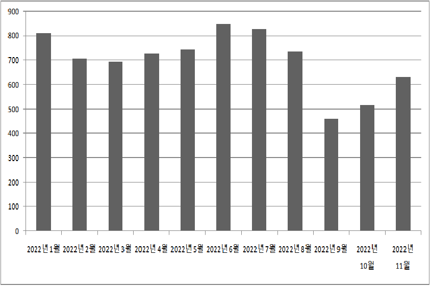 내수판매의 경우 올해 11월 40만5,000톤으로 지난해 같은 기간 56만9,000톤 보다 28.8% 감소했다. 누계실적은 482만5,000톤으로 지난해 같은 기간 615만7,000톤 보다 21.6% 급감했다. 수출은 11월 11만7,000톤으로 지난해 같은 기간 14만4,000톤 보다 23.5% 줄었다. 누계실적은 143만4,000톤으로 지난해 같은 기간 184만9,000톤 보다 22.4% 감소했다.