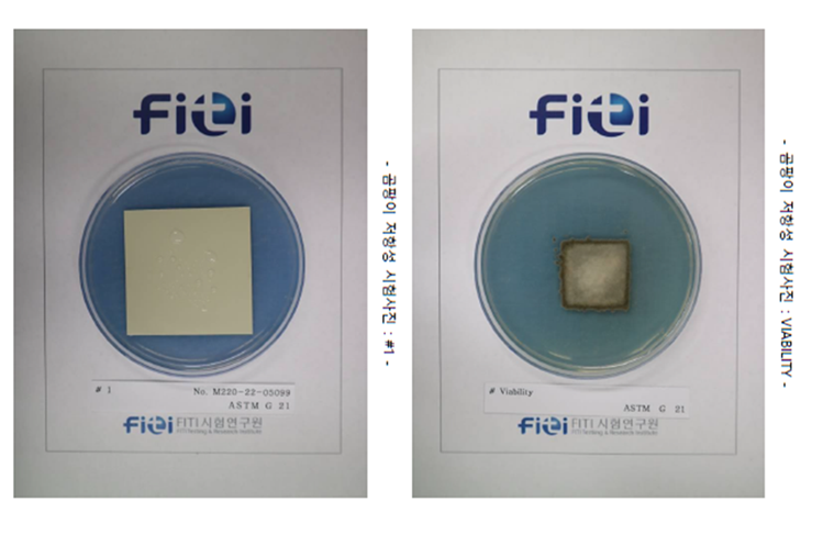 디케이동신이 개발한 이 항곰팡이 컬러강판은 FITI에서 항곰팡이 저항성(log(CFU)) 테스트를 받았다. 테스트는 ASTM D 6329와 ASTM G-21로 진행된다. 환경으로는 상대습도 85%, 온도 28도에서 28일 배양 후를 평가 기준으로 두고 있으며 ASTM D 6329 시험 규격의 항곰팡이 저항성 1.0log (CFU)이하, ASTM G 21 시험 규격의 0등급 이상 기준을 동시 충족해야 성능을 인증받을 수 있다.