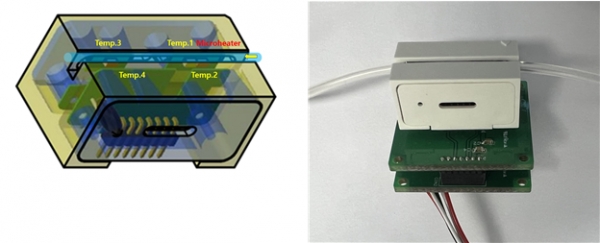 연구팀은 약물의 초저속 유량을 정밀하게 측정하기 위해 마이크로히터와 다수의 온도 센서를 이용한 열유량 센서를 개발했다. 이 기술은 약물이 튜브를 통해 흐를 때 열원의 온도가 하강하고 동시에 열원으로 인해 약물 온도가 상승하는 원리를 조합하여 온도 변화의 폭을 넓혀 초저속 유량을 정밀하게 측정할 수 있다.