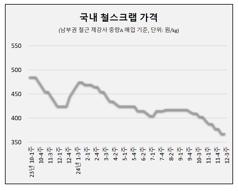 다만 최근 철근 유통 시황이 연내 최저점을 재차 경신하면서 철스크랩 추가 인하 우려도 아직까진 유효한 상황이다. 동국제강이 다음달 선제적으로 철근 가격 인상을 알리면서 시장 흐름 변화에도 이목이 집중된다.