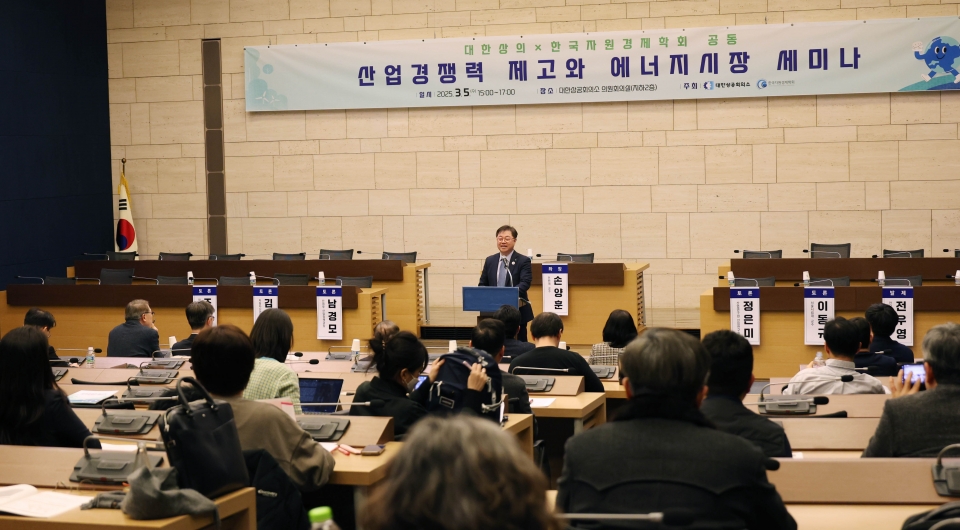 5일, 서울 대한상공회의소 의원회의실에서 대한상의 회원사 및 한국자원경제학회 회원 등 100여 명이 참석한 가운데 ‘산업경쟁력 제고와 에너지시장 세미나’가 열렸다.
