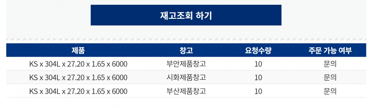한편, 이렘은 지난 10일부로 고객사 서비스를 강화한 홈페이지 내 ‘고객 전용 메뉴’란을 신설했다. 아울러 홈페이지를 통해 주요 하치장 및 공장별 스테인리스 강관 재고 및 주문 가능 여부를 확인할 수 있는 실시간 재고 현황 서비스를 재공하기 시작했다. 필요한 규격·강종·외경·두께·길이·수량을 입력하면 해당 물품을 취급하는 사업장의 재고 현황 및 주문 가능 여부를 확인할 수 있다.