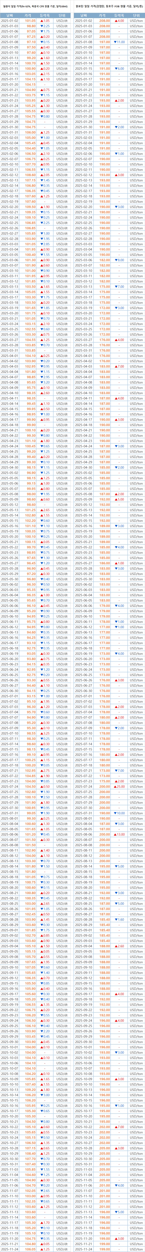 [표] 일일 철강 원료 가격 동향(11월 24일)