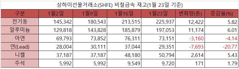 [표] 상하이선물거래소 재고(1월 23일)