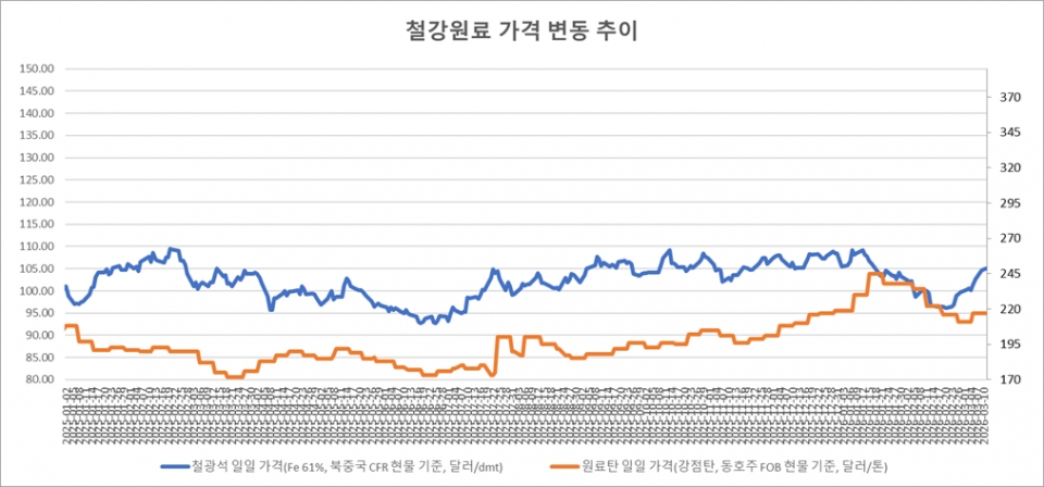 키워드 #철광석 #제철용 원료탄 이사무엘 기자 smlee@snmnews.com 다른 기사 보기 관련기사 중기중앙회, ‘조합추천 구매제도 설명회’ 개최 인천시, 철강산업 위기 극복 민관협의체 전격 출범 “방산소재 상용화 위해 민·군 겸용 소재 발굴 및 지원 필요” 철근 설비 절반 폐쇄…현대제철, 인천공장 희망퇴직·전환배치 개시 日 도쿄제철, 철스크랩 全거점 일제히 인상…H2 4만8,000엔 CISA 자오밍거 “수출 시 부가가치세 환급 재개 일부 필요” 강관업계, 정부 수소도시 구축에 배관 물량 확보 [단독] 포스코, 수재슬래그 ‘시멘트 의존’ 벗는다…농업·레저·생태복원·탄소저감까지 확장 [표] LME 비철금속 및 환율 동향(3월 11일) 저작권자 © 철강금속신문 무단전재 및 재배포 금지