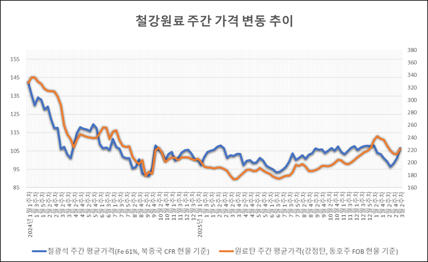 [표] 일일 철강 원료 가격 동향(3월 18일)