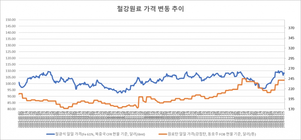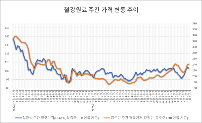 키워드 #철광석 #제철용 원료탄 이사무엘 기자 smlee@snmnews.com 다른 기사 보기 관련기사 2026년 4월 中企 경기전망지수 80.8, 전월比 1.7p 하락 HD건설기계, 호주 시장 개척 본격 추진 하이스틸, 4월 강관 제품價 인상 세아홀딩스, 기업가치 제고 계획 이행 공개 포스코그룹, 에너지 절감 드라이브 탑승…‘S.A.V.E. 챌린지’ 전사 가동 베트남 수요도 주춤…올해 日 철스크랩 수출 감소세 글로벌 철스크랩, 미국산 400달러 돌파…제강사 수입 엄두 못내 "철근도 특허 대상"…현대제철, '내진철근' 통상실시권 계약 체결 [포스코특집] 포스코 58년…국가 기간산업에서 저탄소·소재 기업으로① 저작권자 © 철강금속신문 무단전재 및 재배포 금지