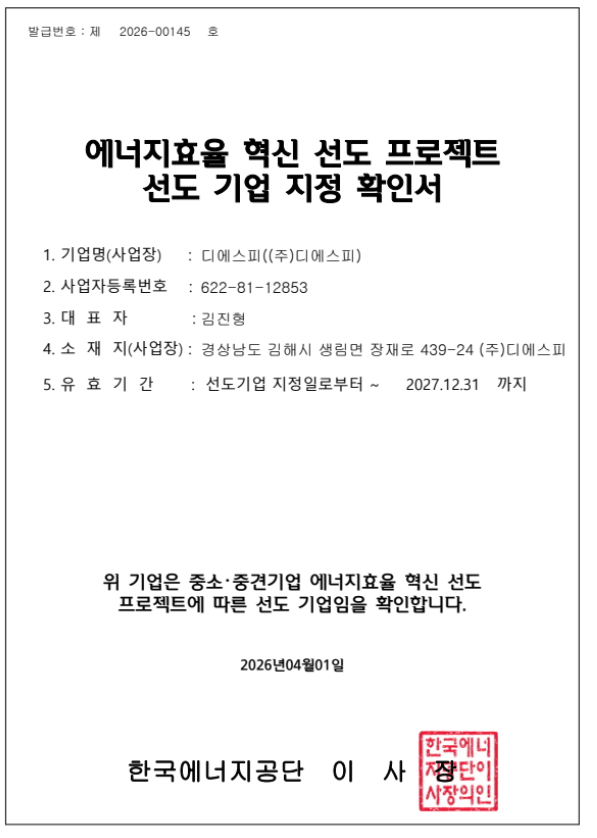 DSP가 선도기업으로 인정받은 KEEP 30+ 프로젝트는 산업통상자원부와 한국에너지공단이 주관하DU 에너지 소비량이 많은 중소·중견기업을 대상으로 에너지 진단, 설비 투자, 효율 관리에 이르는 전 과정을 맞춤형으로 지원하는 프로그램이다.