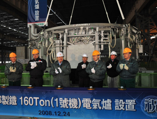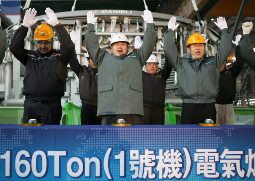 동부제철(열연부문 대표 한광희)은 12월 24일 오전 아산만 제철공장 건설 현장(충남 당진군)에서 김준기 동부그룹 회장(가운데)과 한광희 열연부문 사장을 비롯한 주요 임직원과 공사 관계자 200여 명이 참석한 가운데 ‘전기로 설치’ 행사를 가졌다.