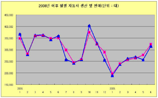 반면 GM대우의 새로운 경차 출시와 현대자동차의 YF소나타, 이미 새롭게 출시한 르노삼성의 SM3 등과 같은 신차 출시 효과가 과연 얼마나 판매를 이끌 것인지에 대한 기대감도 아직은 남아있어 하반기 전체적으로는 글로벌 경기 회복과 함께 국내 자동차 생산과 판매도 개선되는 모습을 보일 것으로 내다봤다.