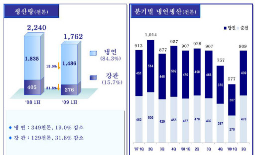 현대하이스코는 12일 기업설명회를 갖고 올해 상반기 생산량이 176만2,000톤으로 전년동기 대비 21.3% 감소했다고 밝혔다.