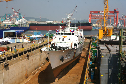 현대중공업은 18일 오전 11시 30분 울산 본사에서 우리나라 해양경찰청에서 수주한 3천 톤급 경비구난함 ‘태평양 9호’의 진수식을 개최했다.
