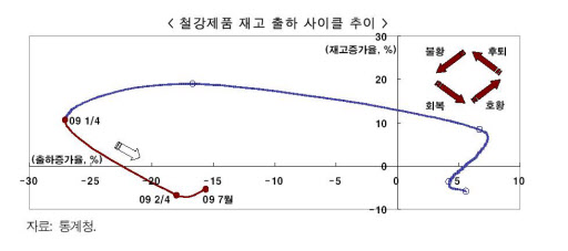 또한, 보고서는 올해 1분기 이후 재고 증감률과 출하 증감률이 모두 하락하는 경기 회복 국면의 모습을 보이고 있다고 밝혔다.