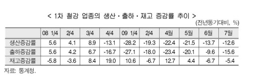 하지만, 2009년 1분기 28.2%의 감소세를 기혹한 이후 생산 침체폭이 완화되고 있어 조만간 경기 생산 구조조정 국면이 마무리될 가능성이 높은 것으로 판단된다고 밝혔다.