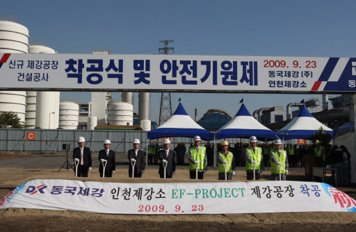 동국제강은 23일 인천 제강소에서 연산 120만톤의 쇳물을 생산할 수 있는 신개념의 전기로 제강 공장을 착공했다.