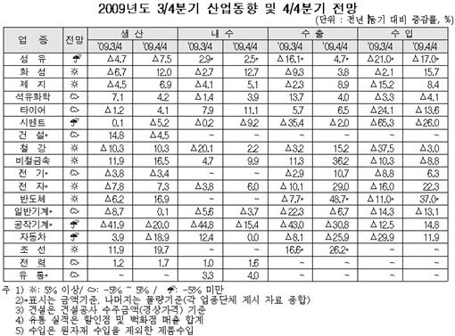 산업계에서는 대부분의 업종들이 4분기에 지난해 동기의 경기위축에 따른 반등효과로 플러스 성장하겠지만 2007년 수준에는 못미칠 것으로 내다보고 있다.