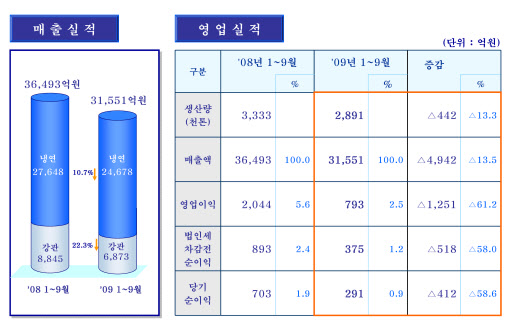 이에 따라 매출액도 올해 3조1,551억원으로 지난해에 비해 크게 줄어든 가운데 냉연부문 매출액은 2조4,678억원으로 10.7%가 줄었고 강관부문은 6,873억원으로 22.3%나 급감했다.