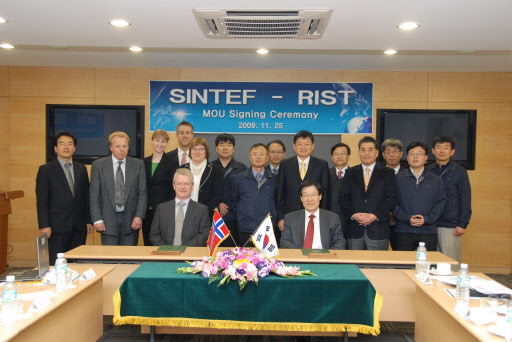 실용화 전문연구기관인 RIST(포항산업과학연구원, 원장 권오준)가 노르웨이의 세계적인 연구기관인 SINTEF(The Foundation for Scientific and Industrial Research:)와 상호협력을 위한 MOU를 체결했다.
