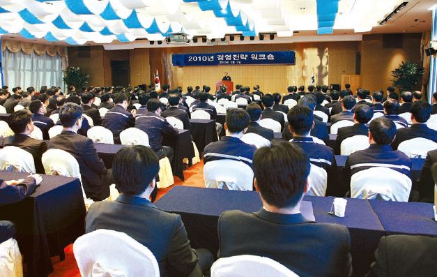 현대제철이 지난 5일‘2010 경영전략 워크숍’을 개최했다. 워크숍에는 박승하 부회장으 임원과 팀장 등 250명이 참석한 가운데 "세계 1등"을 강조했다.