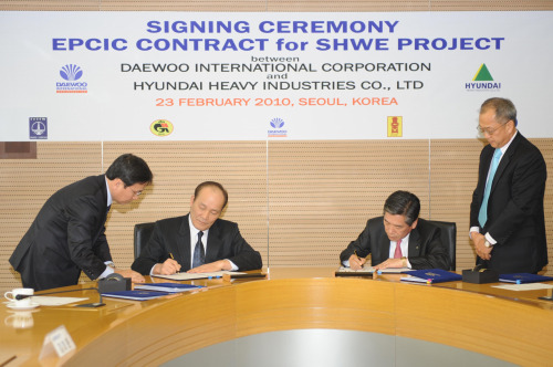 현대중공업은 지난 23일 총 공사금액 14억달러(약 1조 6천억원) 규모의 미얀마 쉐(SHWE) 가스전 공사에 대한 정식계약 서명식을 가졌다.