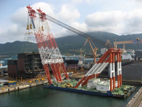 대우조선해양은 지난해 2월 자체 보유중인 3대의 해상크레인을 연결해 5,000톤 규모의 골리앗 크레인을 한 번에 인양 운반하는 ‘병렬 해상크레인을 이용한 원타임 셋팅 공법’과 3,000톤 이상의 초대형 슈퍼블록을 드라이 독에 직접 운반하는 ‘링타입 탑재공법’ 등 다양한 대형 구조물 인양 경험이 있다.