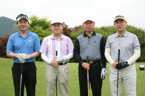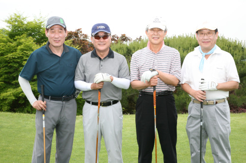 本紙 창간 16주년 및 제11회 철의 날 기념 골프모임 C팀이 Tee off 전 조별 사진을 찍고 있다.