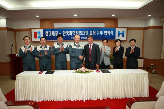 회사는 당진제철소에서 지난 10일 ‘산학연 지식재산 교육 기부 운동’의 일환으로 한국과학창의재단과 교육 기부 협약을 체결했다. 협약식에는 우유철 사장과 정윤 한국과학창의재단 이사장 등이 참석했다.