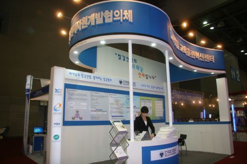 인적자원개발협의체는 전시회 장에서 각종 철강산업 인재육성 프로그램과 교육프로램을 홍보하고 있다. 이에 따라 많은 철강업체 관계자들이 이 곳에 모여 프로그램들을 살펴보고 있다.