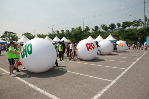 제12회 철의날 기념 철강사랑 마라톤 대회 참가자들이 휴식시간을 이용해 동반사랑 공굴리기 대회를 가졌다. 6명이 1팀을 이뤄 매 경기당 4팀이 경쟁을 벌이고 승리팀에게는 쌀이 경품으로 지급됐다.