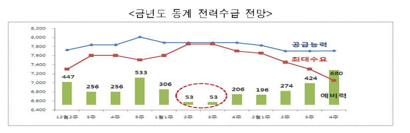 한편 동계기간 전력피크시간대 수요를 대폭 감축하기 위해 겨울철 피크시간대에 높은 요금을 부과하기로 했다. 지경부에 따르면 전력용량 300kW이상 소비자는 국내 전체 전력의 61% 이상을 소비하고 있다. 이에 따라 피크시간대에 높은 요금을 부과하는 요금제의 적용대상을 기존 1,000kW 이상 1만3,000호에서 300kW 이상 11만1,000호로 대폭 확대했다.