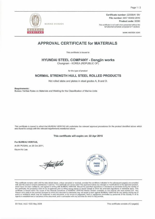 당진제철소는 지난해 7월부터 선급 인증 취득에 나서 지난달까지 한국과 중국, 일본을 포함해 러시아, 프랑스, 노르웨이, 미국, 독일 등 10개 인증을 취득함으로써 전 세계 주요 조선소에 납품할 수 있는 품질을 확보하게 됐다.