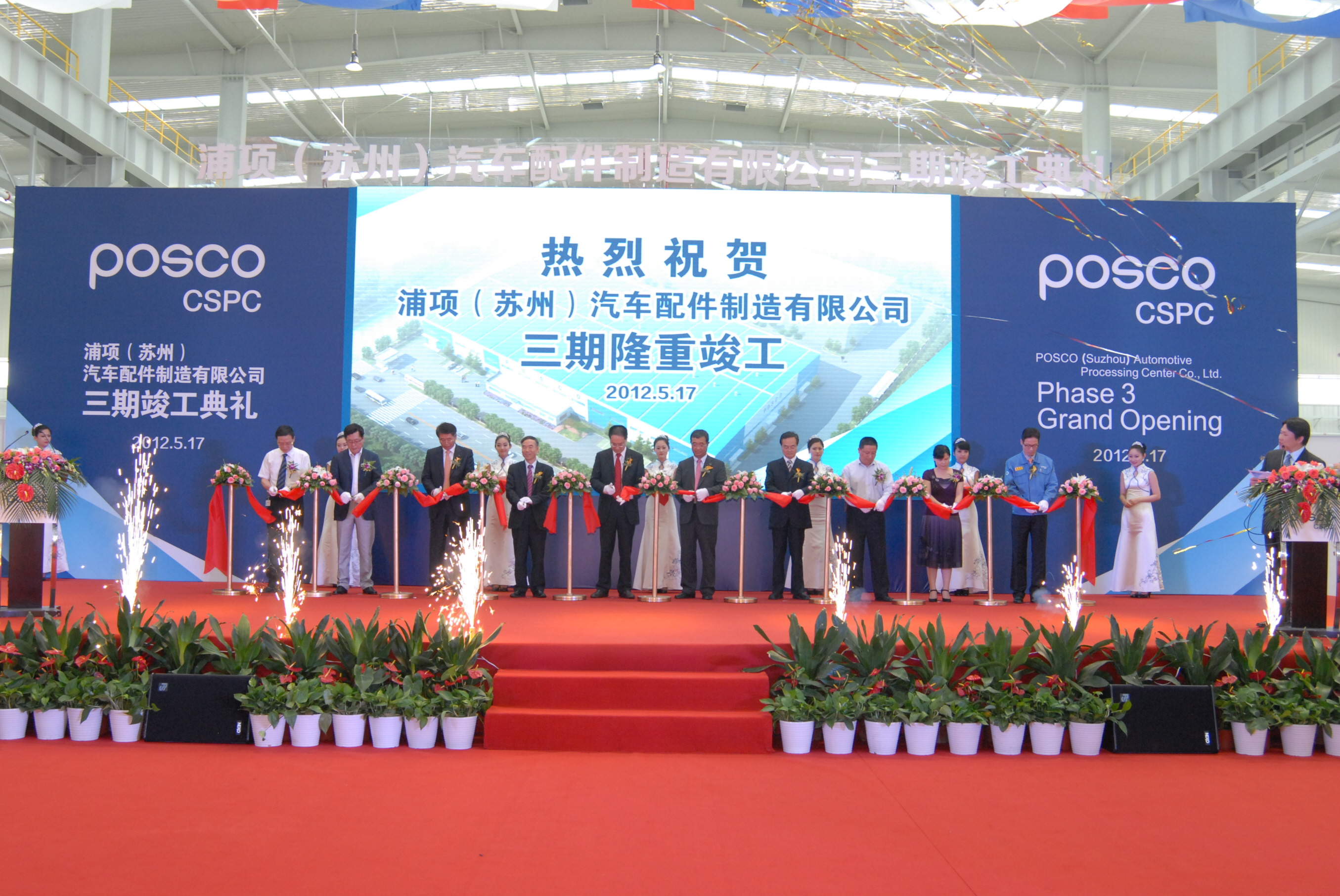 이 날 준공식에는 마케팅본부장인 황은연 전무를 비롯한 포스코 임직원들과 한웨이 쿤산시 부시장을 비롯한 정부 관계자 및 고객사 임직원 등 180여명이 참석했다.