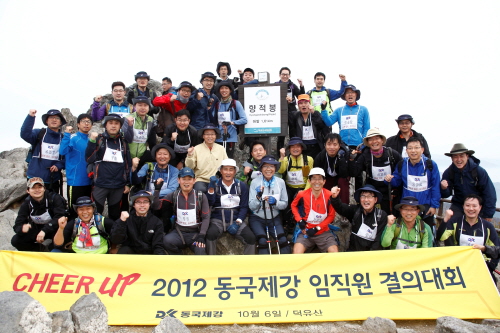 장세주 회장과 김영철 사장 및 임직원 530여명은 10월 6일 전북 소재 덕유산에서 ‘Cheer up 2012 동국제강 임직원 결의대회’라는 모토를 내걸고 임직원 결의대회를 개최했다. 금번 결의대회는 글로벌 경제 위기와 경기 불황 등으로 침체되어 있는 분위기를 타파하자는 취지에서 열렸다.